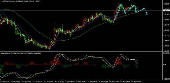 从美元兑加元4小时走势来看,美元兑加元的波段力度已经开始幅多向空转化,如果后市继续这样,那空头也很快来临,况且美加前方也是五浪走势,之后下跌也是顺势而为。