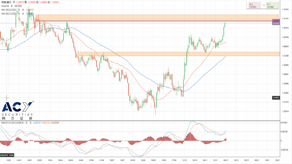 此前梅姨主导脱欧谈判期间,协议进展一度十分艰难,除英欧后续贸易关系无法得到妥善处理以外,无法占据多数席位是另外一个主要因素。市场目前看好英镑是因后市约翰逊取得多数席位能够排除尽可能多的不确定,不过这也会使市场对此报以过高的期望,需要注意的是梅姨之所以失去多数席位,正是因为对于当时民调结果的盲目乐观。所谓希望越大失望越大,在当前距离大选不足1周的时间节点,市场基调乐观,这导致“即使约翰逊获得多数席位,但其领带数量少小于市场预期”都可能会引发英镑快速回吐涨幅。