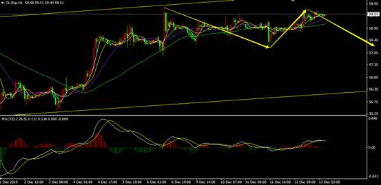 从WTI原油1小时图来看,原油前天低点至昨天高点可以看作是B浪反弹,接下来就是大C浪下跌,前面走的一直很复杂,后面也会做好复杂走势的准备。
