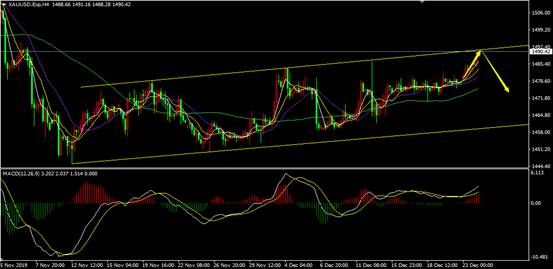 1490附近做空,止损1494,目标1480。