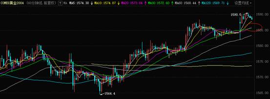 COMEX04黄金期货1小时K线图