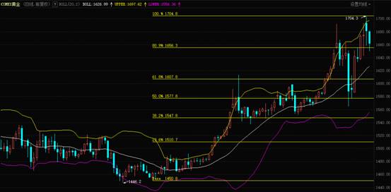 艾德金业:全球经历黑色星期一,股市出现暴跌,黄金因前期涨幅大而出现回落,目前市场波动率巨大,信心仍然很脆弱,一旦股市出现下跌,黄金有望重拾升势,今日投资者重点关注1656美元/盎司左右的低吸机会,止损设置为:1650美元/盎司附近。