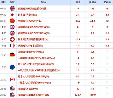 周一晚间,欧洲公布的经济数据全面好于预期,其中三月经济景气指数和消费者信心指数均超于预期,表明欧洲经济并没有预期的那么差,今日亚洲市场,中国公布的数据同样好于预期。国家统计局:3月份PMI指数为52.0%,可以直观地理解为3月份有一半以上企业生产经营状况比2月份有所好转,在经济出现较大波动时,有时环比指标与同比指标的走势可能会发生背离。由于目前主要宏观经济数据多为同比指标,所以PMI的环比回升并不意味着其他主要宏观经济数据一定会发生同向变化;由于采购经理指数是在定性调查基础上形成的量化指标,不能准确反映企业生产量等各类指标绝对值的变化,3月份PMI数据的回升仅能代表本月企业生产经营状况相较于2月份有所好转。