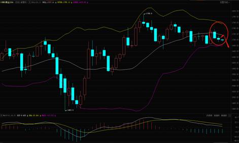 从技术形态看,黄金已经有所走弱,日线看,黄金的布林开口有所收窄,且近期黄金持续运行在布林中轨以下,导致布林轨道线有向下走的趋势,黄金或将会迎来较大幅度的回落。