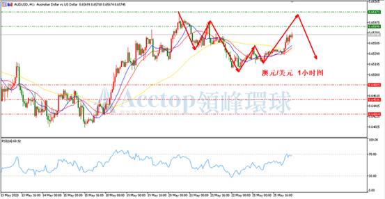 如上图所示,在澳美1小时周期中,短期的上涨趋势已经形成,回调后将是多单机会,在目前此波1小时上涨趋势不改变的情况下,上涨有望再次突破前期高点0.6615。指标上判断,MA13均线与MA31均线已经形成金叉,当下正向上穿越MA72均线,预期日内至少还有一段上涨,若直接上涨突破0.6597,需小心价格回撤。参考阻力0.6597、0.6617;参考支撑0.6551、0.6525。