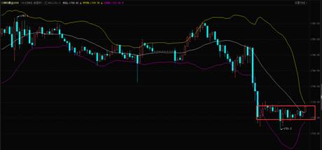 交易策略:周二美国股票市场表现火热,无风险收益率冲高,导致黄金出现一波下跌,当前黄金短期有所企稳,30分钟布林轨道收缩,今日投资者可以考虑在1724-1727美元/盎司范围内低吸做多,止损设置为:1715美元/盎司,上方目标位:1736美元/盎司。