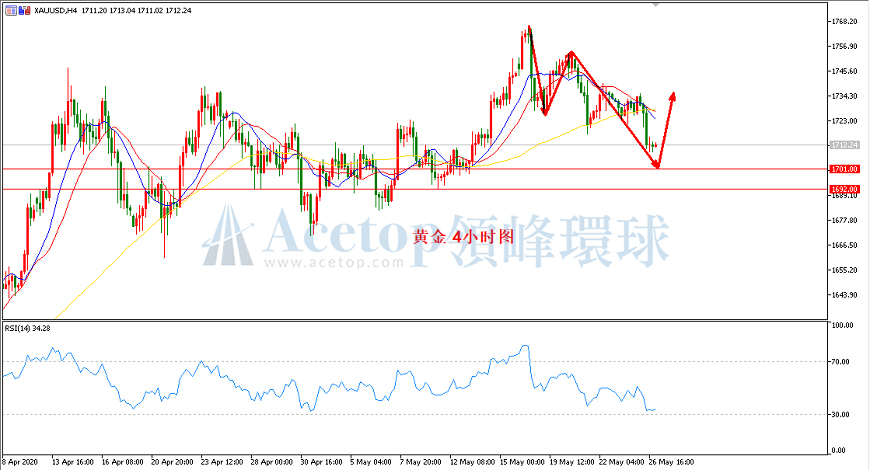 回顾昨日金价走势,其最高价1735,最低价1708,日K收大阴线,整体下跌超过20美元。昨日文中提到1733附近的空单第一目标已经达到,若有持仓暂时保留,带好止损看第二目标位置。方向上震荡为主。