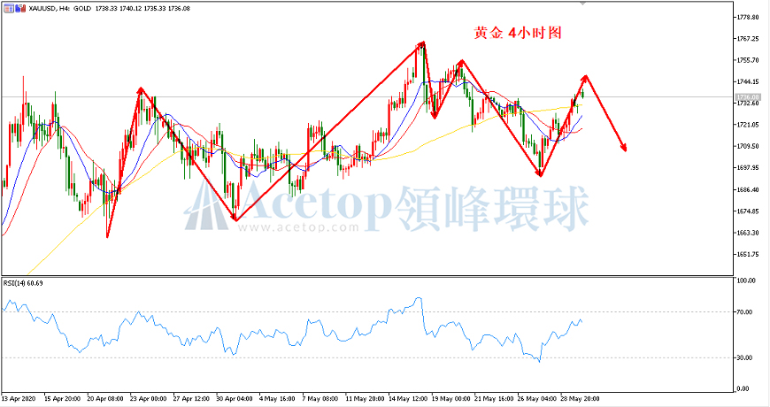 消息面来看,投资者对本次危机造成的经济损失的担忧与日俱增,中美紧张局势的更是加剧了人们的担忧,以及全球低利率环境,使得避险黄金有望实现逾3%的月度涨幅,上月涨幅2.58%。市场现在密切关注全球最大两个经济体,这可能是一场持久战。本周除了中美局势之外,市场将迎来美国非农等重磅经济数据,以及欧洲央行决议等!市场预计就业人数将减少800万,失业率将高达19.5%,劳动力参与率自1971年来首次降至60%以下。在上周五的讲话中,美联储主席鲍威尔表示,美国因公共卫生事件而感染的人数可能激增,劳动力的减少或令经济复苏受阻,不过他重申美联储将继续采取行动对抗危机的负面影响。现在,投资者正在寻找有关美联储何时可能重启大规模购债的线索,以及可能会持续多久的明确承诺。这是鲍威尔在美联储6月9-10日政策会议前的最后一次公开讲话。