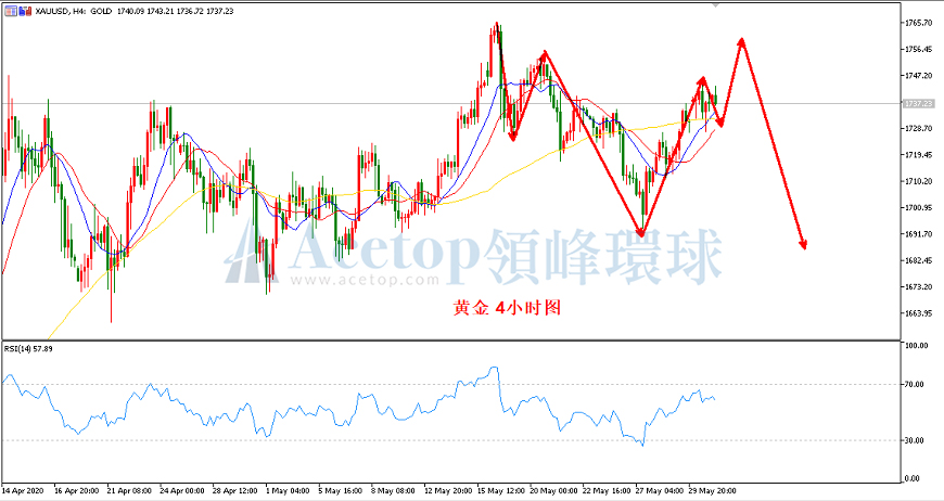 多单:1730附近尝试做多,止损1725,目标1740、1757附近。