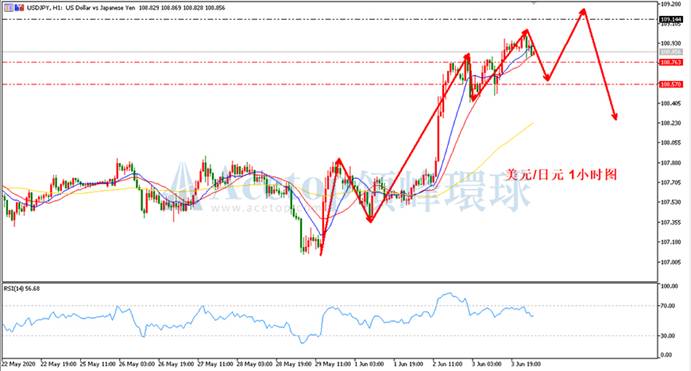 回顾周三美日价格走势,亚盘缓慢上涨,欧盘时段连收2根1小时周期的阴线,其后美盘时段快速拉升,修复其下跌,最终日线收阳,录得日内最高价108.98,最低价108.41。日内方向看涨。