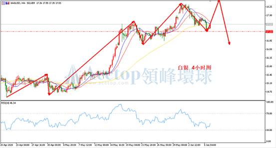 回顾上周五白银价格走势,最高录得17.75,最低录得17.20,日线收阴线。方向上偏向震荡。