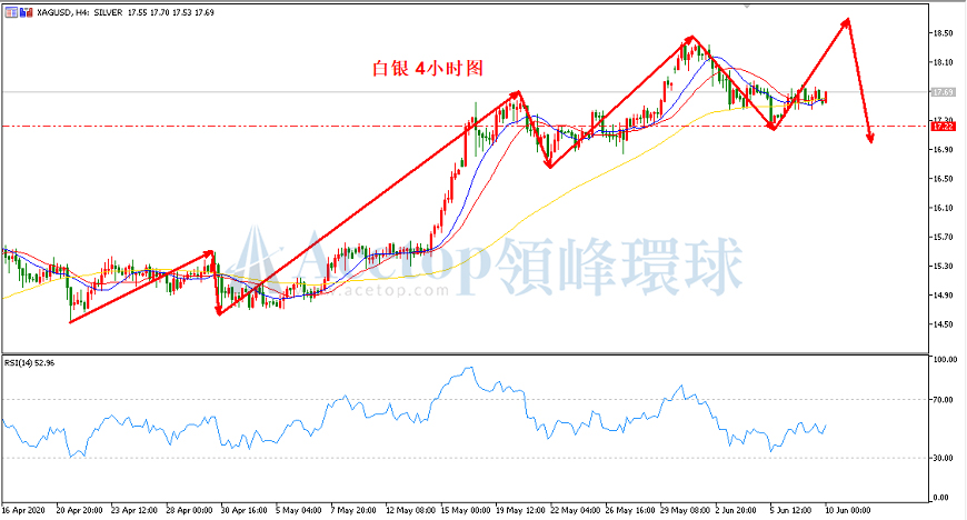 回顾昨日白银价格走势,最高录得17.76,最低录得17.45,日线收小阴线,昨日文中提到17.40附近的多单可继续持仓看目标位置。方向偏震荡上涨。
