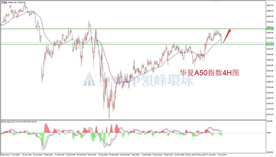 华夏A50指数今日开盘后大幅回落,在高位进行调整。价格在13960附近受到压力后,进行调整,趋势仍在延续。近期A50走势节奏较快,突破上行弹,属于强势走势。从4小时图表上看,价格突破重要支撑后进行回踩,回踩后将继续进行上行。指标上,4小时MACD动能柱面积逐渐增加,DIFF和DEA在零轴上方运行,双线在零轴上方,显示价格的强势信号。日内建议回落做多,注意控制风险。