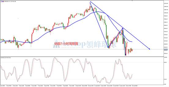纳指1小时图来看,纳指在创出历史新高10135后,迅速跳水。并且跌破了多空线,步入了1小时的空头格局。而且,在结构上,更是走出了高低点同步下移的技术形态。当纳指反弹至多空线后,空头则迅速发力打压市场。可见,此轮震荡下行的技术结构还将继续延续。依然秉承多空线线下做空的思路,待反弹至多空线或者技术压力位之后,进场布局空单。