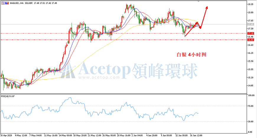 日内数据相对较多,重点关注晚间20:30分将公布美国至6月13日当周初请失业金人数,前值为154.2万人,预期值是130万人,从预期值和前值比较,市场还是偏向看好美元的。若晚间公布的数据大于预期值,则利好金银。