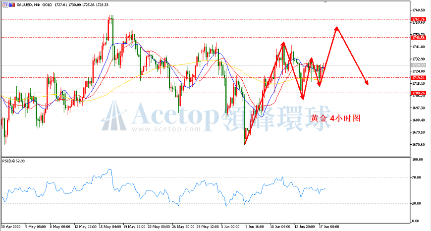 回顾昨日金价走势,全天仍然处于小幅震荡之中,录得最低价1713、最高价1730,昨日文中提到1715附近的多单策略,第一目标已经达到,若有持仓可保留。方向上,日内震荡看涨。