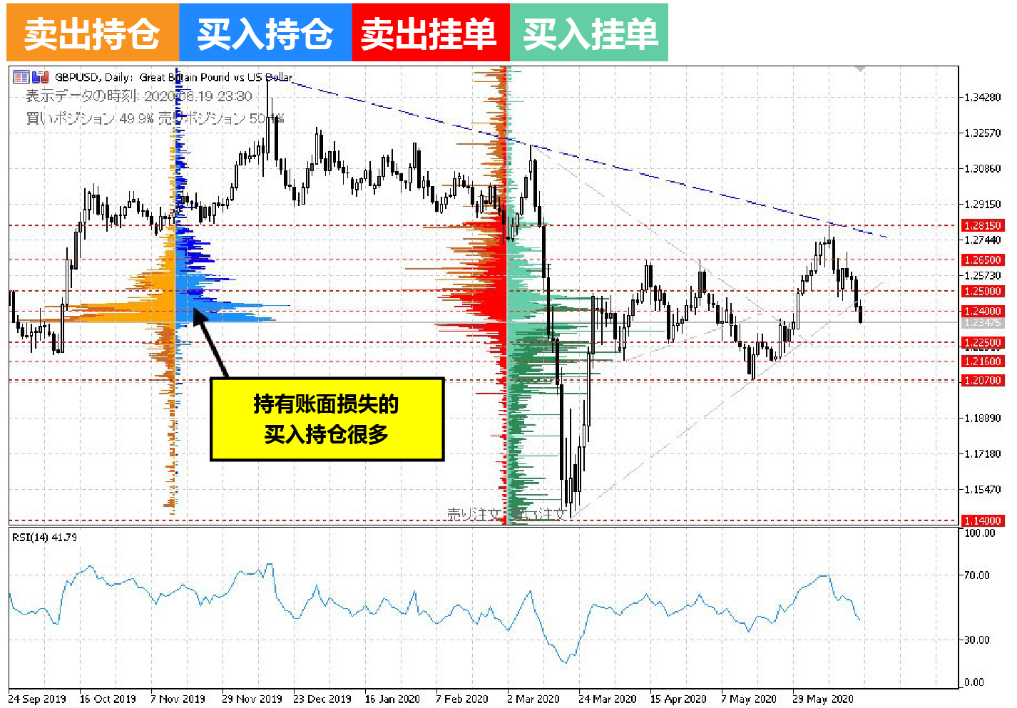 从OANDA持仓数据看,多空双方均衡,由于下跌影响,持有账面损失的买入持仓增加,低价位下跌的话,这些买入持仓的止损卖出增加,短期内要小心下跌趋势增强的可能。