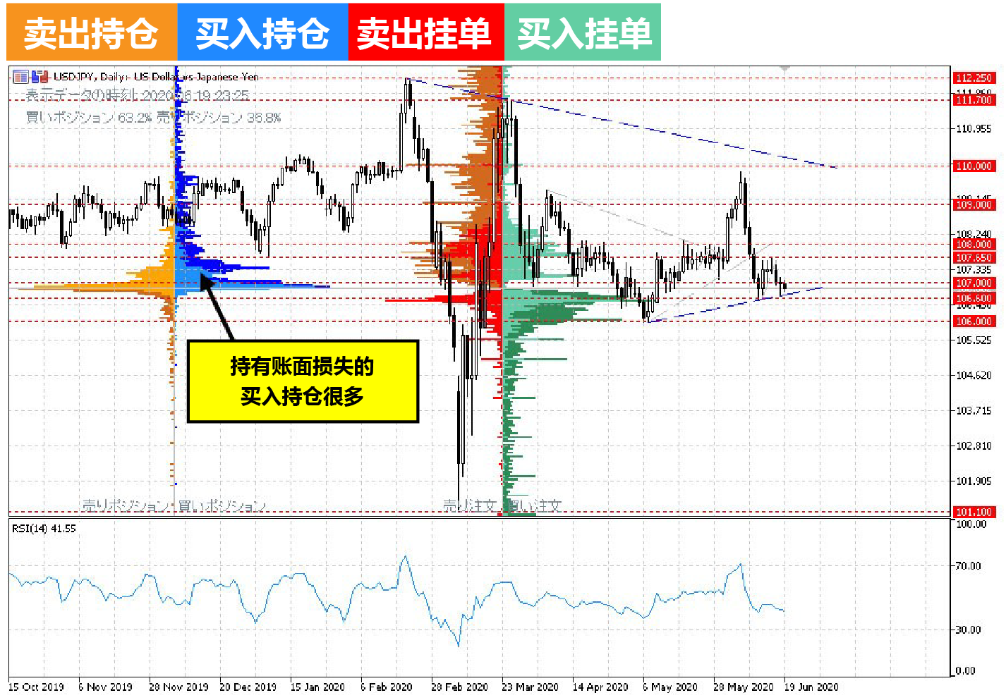 从OANDA挂单数据看,当前价格下方买入挂单很多,在下跌时买入挂单容易出现,但是跌破106.00的话,买入逐渐减少,在下跌过程中形成的买入持仓的止损可能增加,因此下跌时要警惕进一步下跌的可能性。