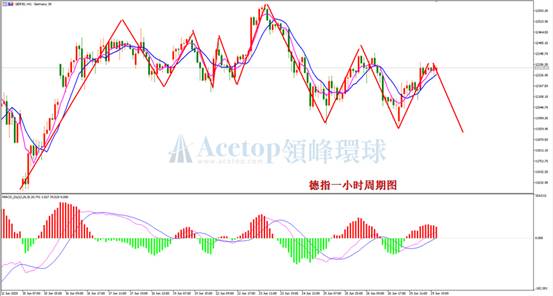 德指昨日开盘后,价格开盘后快速测试前低未能成功,其后跌至11955附近后,多头开始反攻,全天走出低开高走局面。近期德指整体走势呈现震荡走低态势,多空盘中博弈较为普遍。指标上,一小时MACD快慢线DIFF和DEA有再次死叉迹象,红色动能柱开始缩短。日内交易上,建议选择逢高做空的思路进行操作。