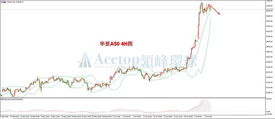 华夏A50指数四小时图形上来看,目前K线形态已经出现了顶分型结构,从MACD指标上来看,上升动能柱不断缩减,快慢线在0轴上方形成金叉,这都预示着后市有较高概率走出回调走势;从一小时图形上来看,布林带三轨走平,MACD快慢线不能再次创出新高,也预示后市出现下跌的几率陡增。建议日内投资者可以采取短空的策略进行操作,空单入场位置可以参考16300区间,该区间有较大压力。