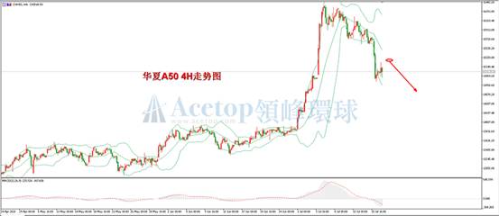 华夏A50指数四小时周期上来看,布林带三轨被向下打开,指数在布林带中轨下方运行,从MACD指标上看,下降动能柱不断伸长,且尚未出现背离信号,是明显的空头走势;从日线形态上看,昨日大幅下跌之后,形成一个大阴线,这种情况下一般很难形成有效反攻。建议日内投资者采取做空的思路进行操作,空单入场位置可以参考15300区间,该区间是四小时布林带中轨,有较强的压力。