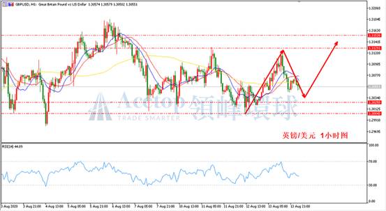 如上图所示,昨日镑美先涨后跌,最高至1.3124,与昨日文章给到的多单目标1.3129相差无几。趋势上,以1.3004为起点的1小时上涨趋势依然保持,节奏支撑点1.3025,若自昨日高点的回调不破1.3025上涨趋势将维持,故而,方向上保持低多为主。指标上,由于镑美自7月31日以来一直处于区间震荡,建议指标参考RSI为主,当RSI位于30附近时,结合如下支撑尝试多单。参考支撑1.3030、1.2995;参考阻力1.3129、1.3155。