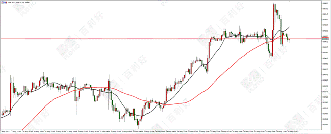 技术面:昨日(5月19日)金价巨震,日振幅2.02%,收盘长上下影十字星,多空在重大消息面前后激烈交锋。技术指标上看,MACD高位背离及13日均线过大乖离率叠加触发巨震,但日线上涨走势依然完好。上方压力1885美元,下方支撑1854美元。