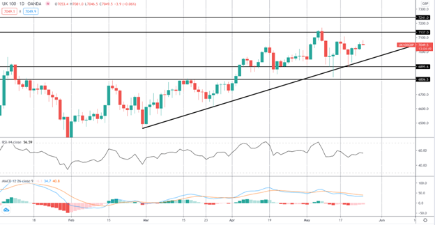 FTSE在上升趋势线和6895.6水平的测试中再次获得支撑。在此之上,尽管目前动能已经减弱,但焦点仍在进一步推高。MACD仍处于看跌区域,尽管已趋于平缓,反映出动能的丧失。最上面的是7137和7241是要标记的关键级别。在6895.6以下,需要注意的下一个支撑位是6806.5。