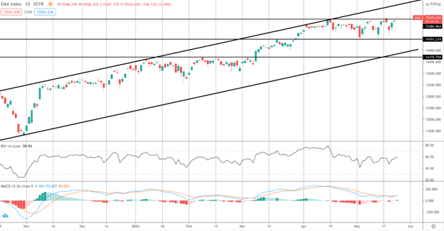 随着牛市通道继续延伸,DAXAX本周突破了15486.96美元的水平,交易新的多年高点。MACD指标在这里再次转为看涨,尽管RSI显示出看跌背离,值得谨慎。不利的一面是,14791.71是需要注意的关键支撑位。