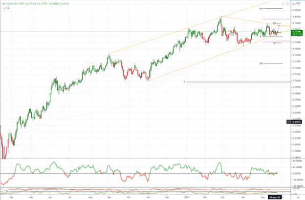 AUDUSD日内偏差:看跌下方.7790看涨上方