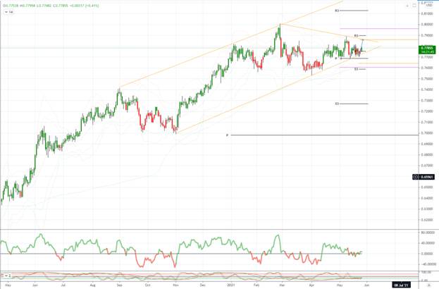AUDUSD日内偏差:看跌下方.7790看涨上方