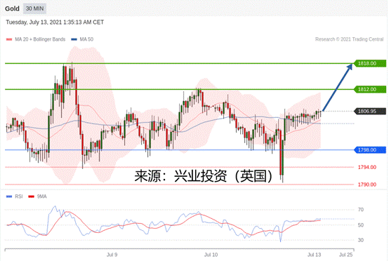 交易策略:在1798.00之上,看涨,目标价位为1812.00,然后为1818.00。