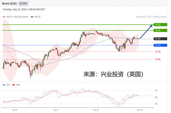 交易策略:在74.70之上,看涨,目标价位为75.85,然后为76.30。