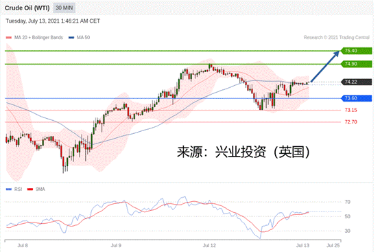 交易策略:在73.60之上,看涨,目标价位为74.90,然后为75.40。