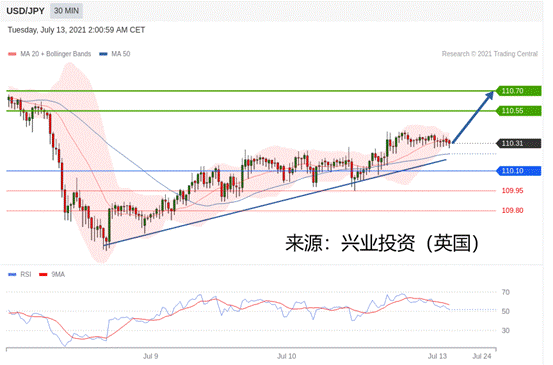 交易策略:在110.10之上,看涨,目标价位为110.55,然后为110.70。