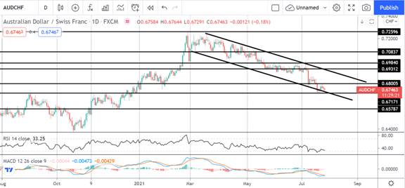 本周两种货币的关键数据几乎没有,主要关注点将是风险流动。除了一般的COVID背景外,本周要关注的主要事件是明天的FOMC。如果美联储有任何鹰派转变(例如任何有关缩减的进一步讨论),这将严重打击风险资产,导致澳元兑瑞郎在短期内走低。