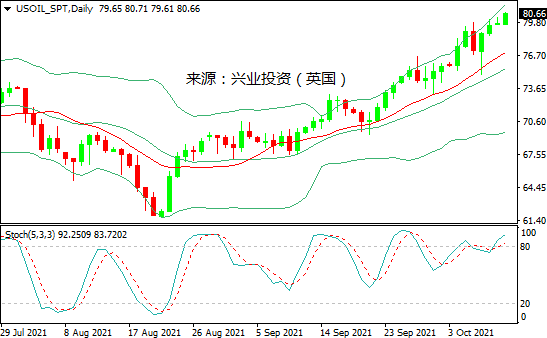 美国能源部表示“目前”没有释放战略石油储备的计划,以及OPEC+决定11月维持既定产量政策不变,40万桶/日的增产幅度低于市场预期,这也为油价持续上涨提供支撑。