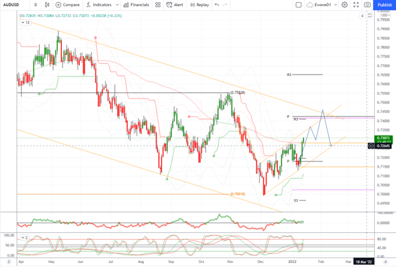 澳元/美元多头试图在100DMA壁架上摆动随着美元抛售似乎逐渐减少,澳元/美元周四小幅上涨如果收于100日均线0.7287以上,动能可能再次上升布林线上升通道将指向61.8%斐波那契0.7340美联储的鹰派态度已被完全消化;周五的中国数据可能是下一个线索如果出口放缓低于预期,冒险应该会再次提振澳元