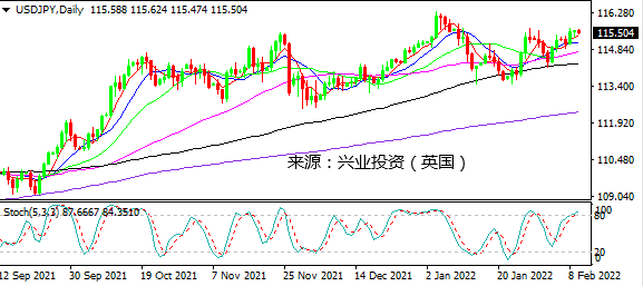 日图在前高115.70下方收录带下影线阳烛但未创新高,仍略显受阻。4小时图多头略占优势,但上方面临阻力。小时图2月低点以来上行势头维持完好,关注前期高点115.70一线能否突破。日内建议关注115.70一线表现决定进一步方向。