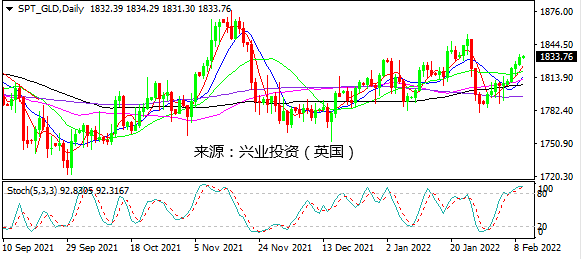 美国股市在科技股引领下全面走高,风险偏好情绪推动风险货币进一步上行,澳元、纽元双双刷新近一周高点,加元重测近期反弹阻力,不过,英镑受英国通胀引起的生活成本危机打压冲高回落收录射击之星。美元指数连续在上周回调低位附近徘徊,等待进一步方向指引。欧元波动也有限,在1.1400上方拉锯。日元在近期回调低点附近整理,略显弱势。黄金维持强势,连续第四天收涨,最高触及1835.66。