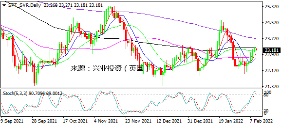 日图连续走高,测试20/100日均线,可能面临打压。4小时图围绕MA200拉锯,随机指标熊背离。小时图在23.30上方有受阻回调迹象,关注23.10一线支持。日内建议谨慎操作,关注23.10-23.35突破跟进机会。