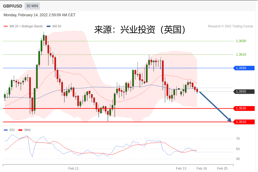 技术点评:只要1.1390阻力位不被突破,向下跌破1.1330位置的风险很高。