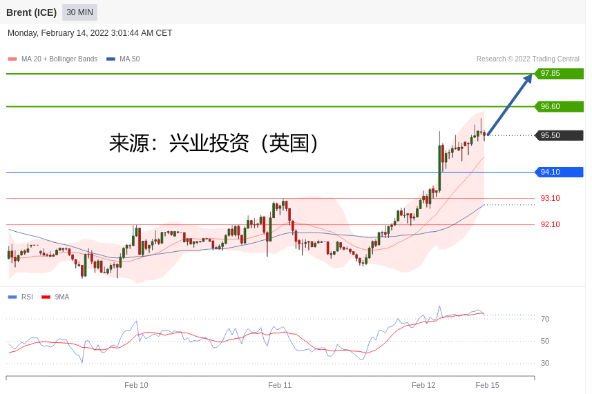 交易策略:在 94.10 之上,看涨,目标价位为 96.60 ,然后为 97.85 。