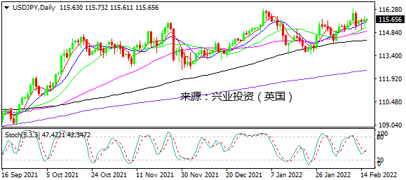 日图整体上行势头维持完好,在115.00上方小幅震荡走高,仍看涨。4小时图震荡走高,下方支持关注115.50一线。小时图形成上移的高低点,但动能不强。日内建议115.40上方倾向做多,止损位于115.20一线,看116.00附近。