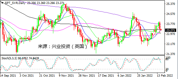 日图在MA200受阻大幅回落,随机指标倾向进一步走低,关注23.00支持。4小时图大跌后空头动能维持完好,仍看跌。小时图在24.00下方受阻大幅回落,短线企稳23.00但缺乏反弹动能,仍看跌。日内建议23.40上方做空,止损23.50上方,下破23.00跟进。