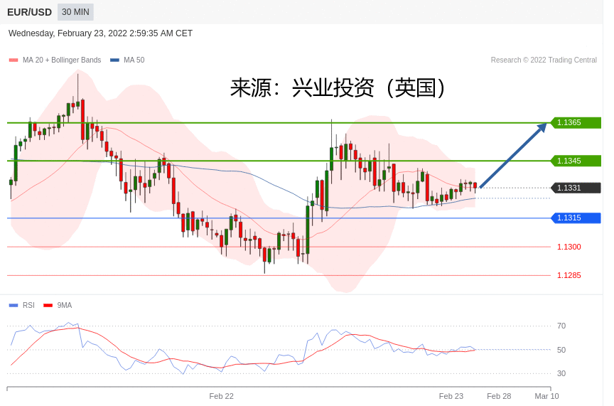 交易策略:在 1.1315 之上,看涨,目标价位为 1.1345 ,然后为 1.1365 。