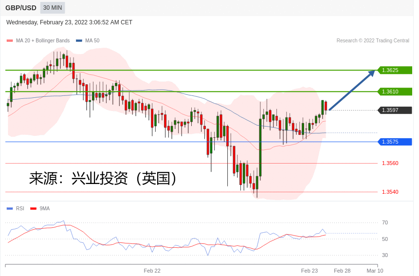 交易策略:在 1.3575 之上,看涨,目标价位为 1.3610 ,然后为 1.3625 。