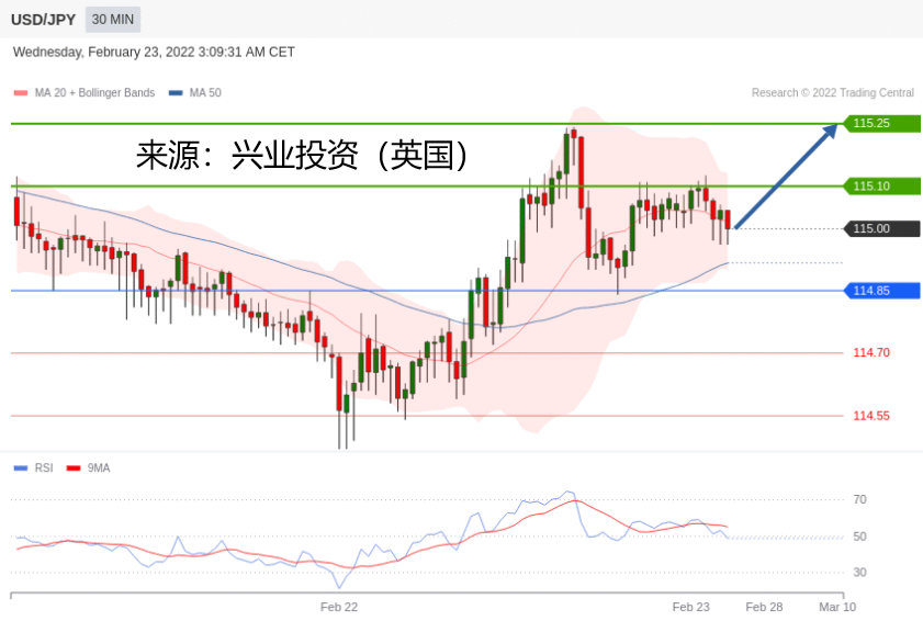 交易策略:在 114.85 之上,看涨,目标价位为 115.10 ,然后为 115.25 。
