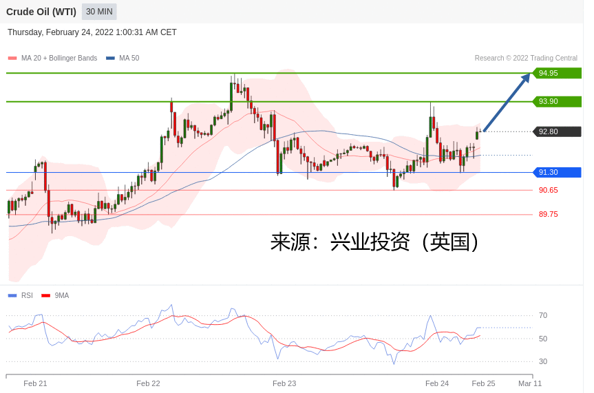 交易策略:在 91.30 之上,看涨,目标价位为 93.90 ,然后为 94.95 。