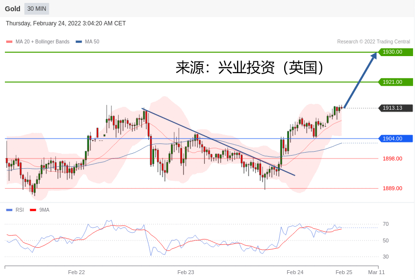 交易策略:在 1904.00 之上,看涨,目标价位为 1921.00 ,然后为 1930.00 。